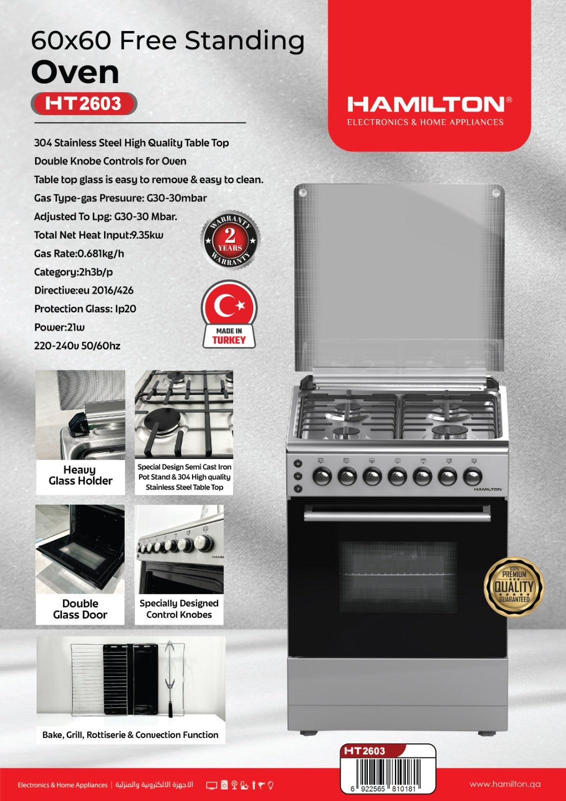 فرن هاميلتون منفصل مستقل (60×60 سم) مزود بنظام أمان كامل (21 واط)