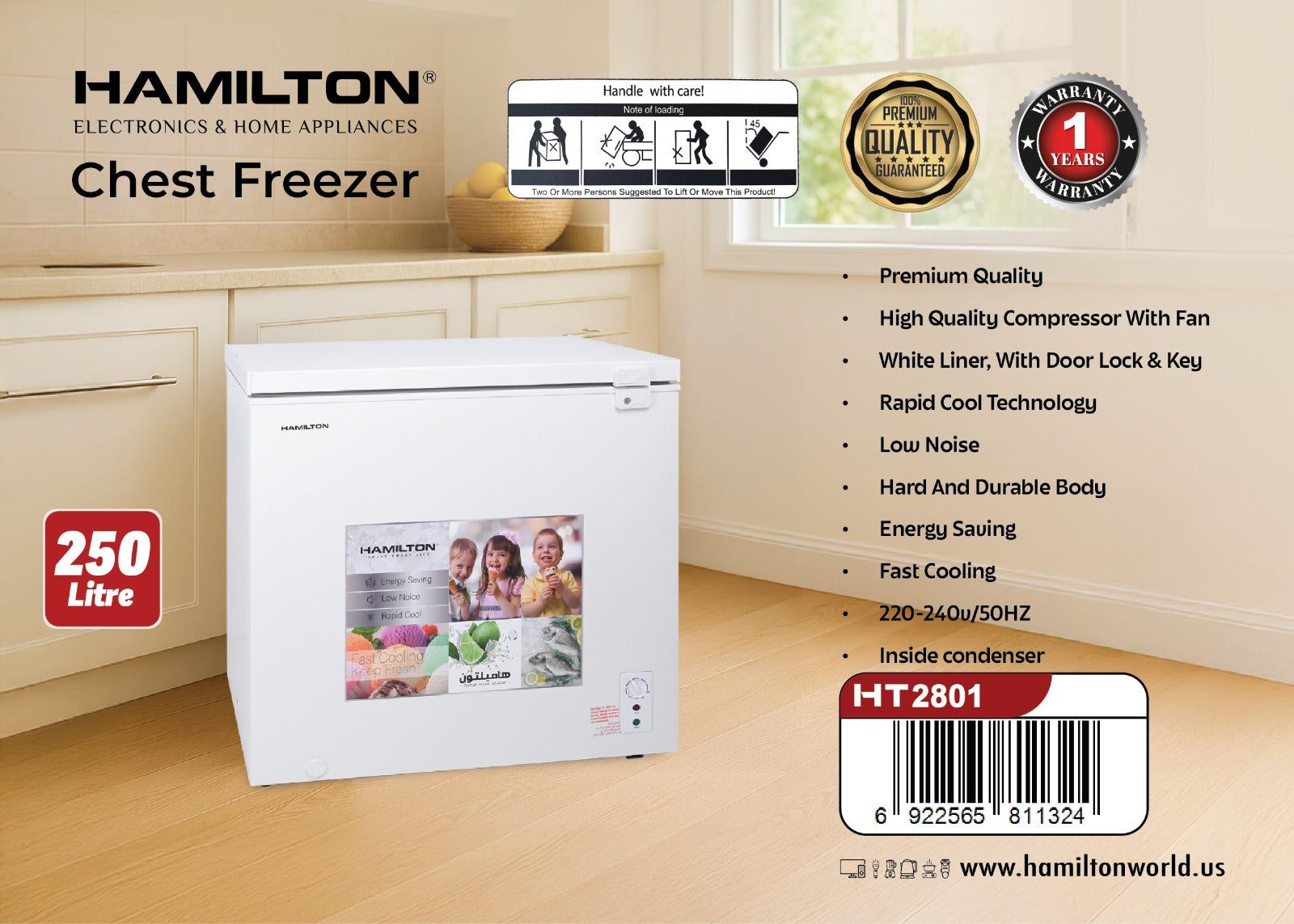 ثلاجة مجمدة أفقية من هاميلتون بسعة 250 لتر