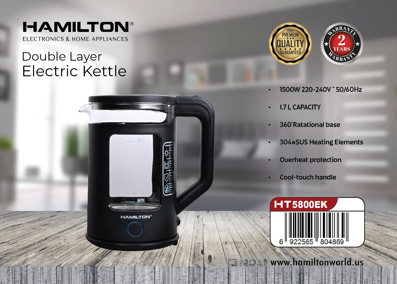 غلاية كهربائية من هاميلتون بسعة 1.7 لتر