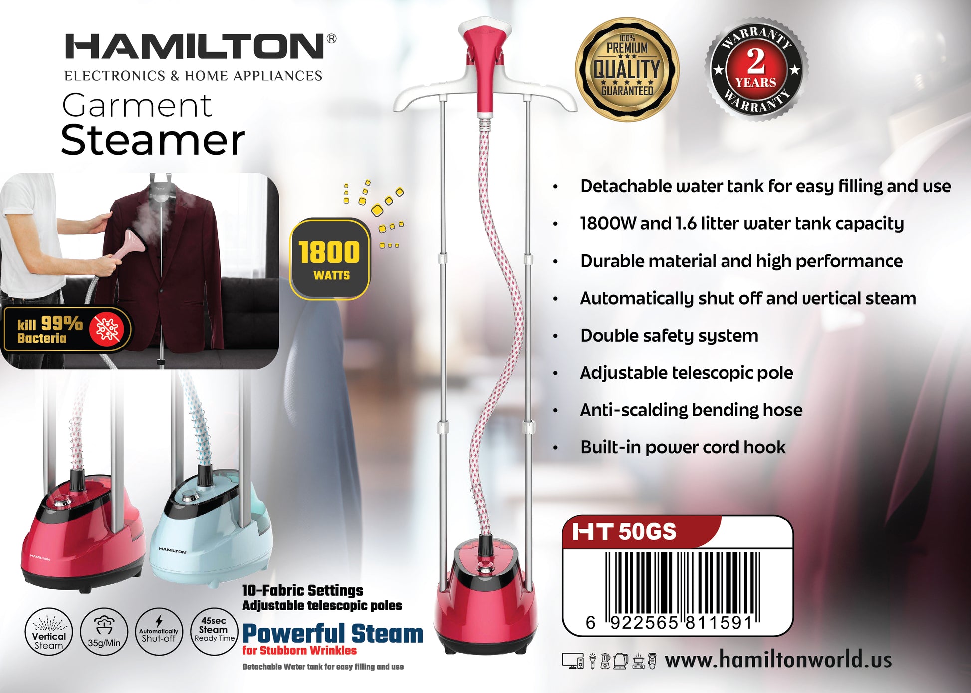 • قوة 1800 واط، سعة خزان المياه 1.6 لتر