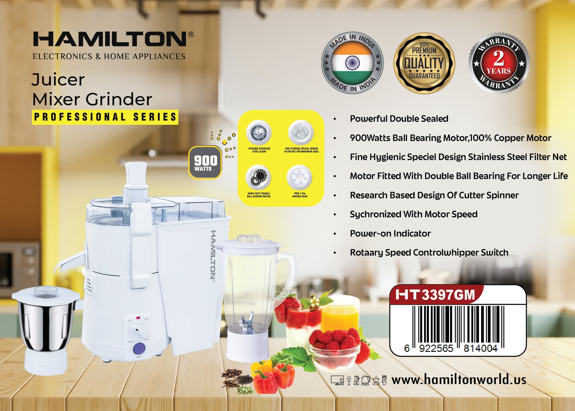 محرك قوي بسعة 900 واط مزود بحشوة زيتية مزدوجة وأحملات كروية