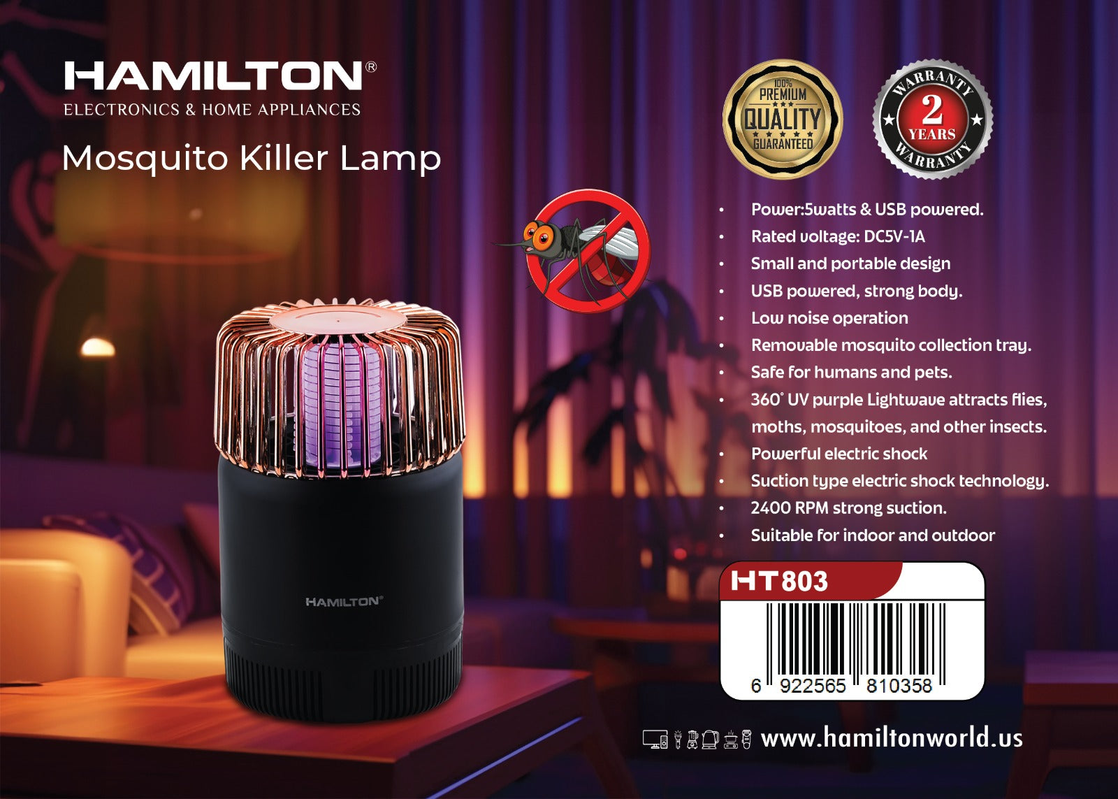 مصباح هاميلتون لمكافحة البعوض، يعمل بنظام الشفط