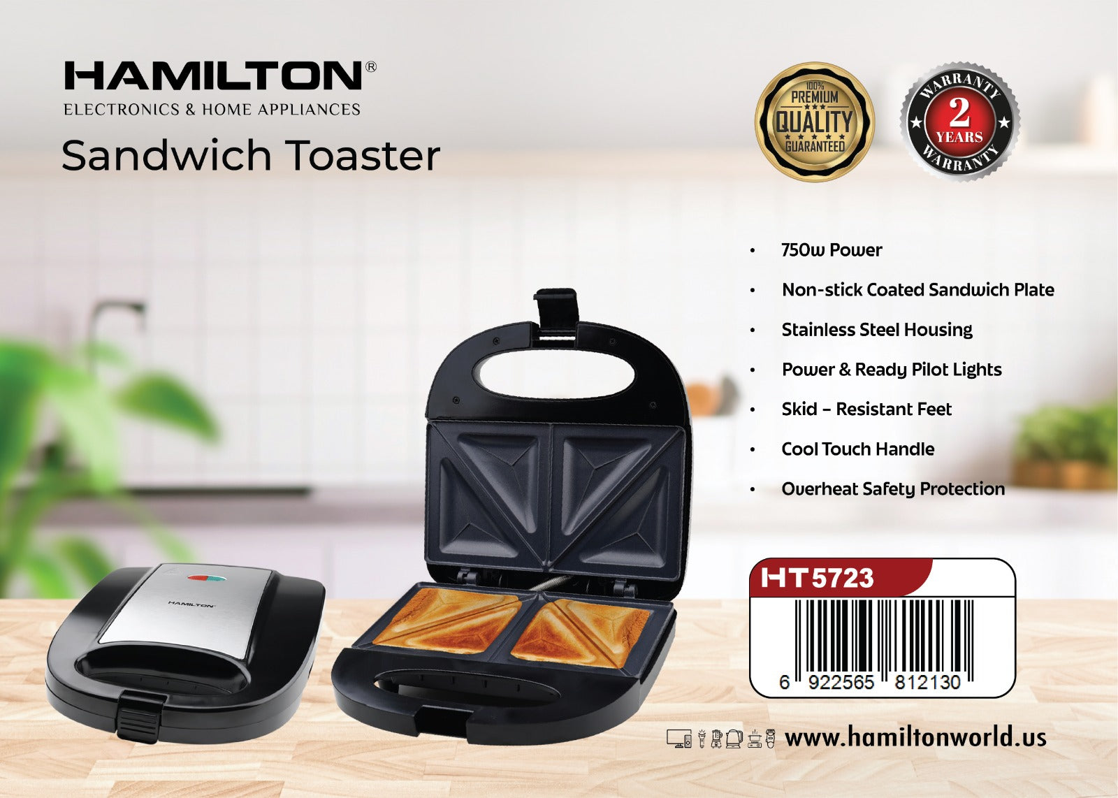 آلة تحميص الساندويتش من هاميلتون، 750 واط