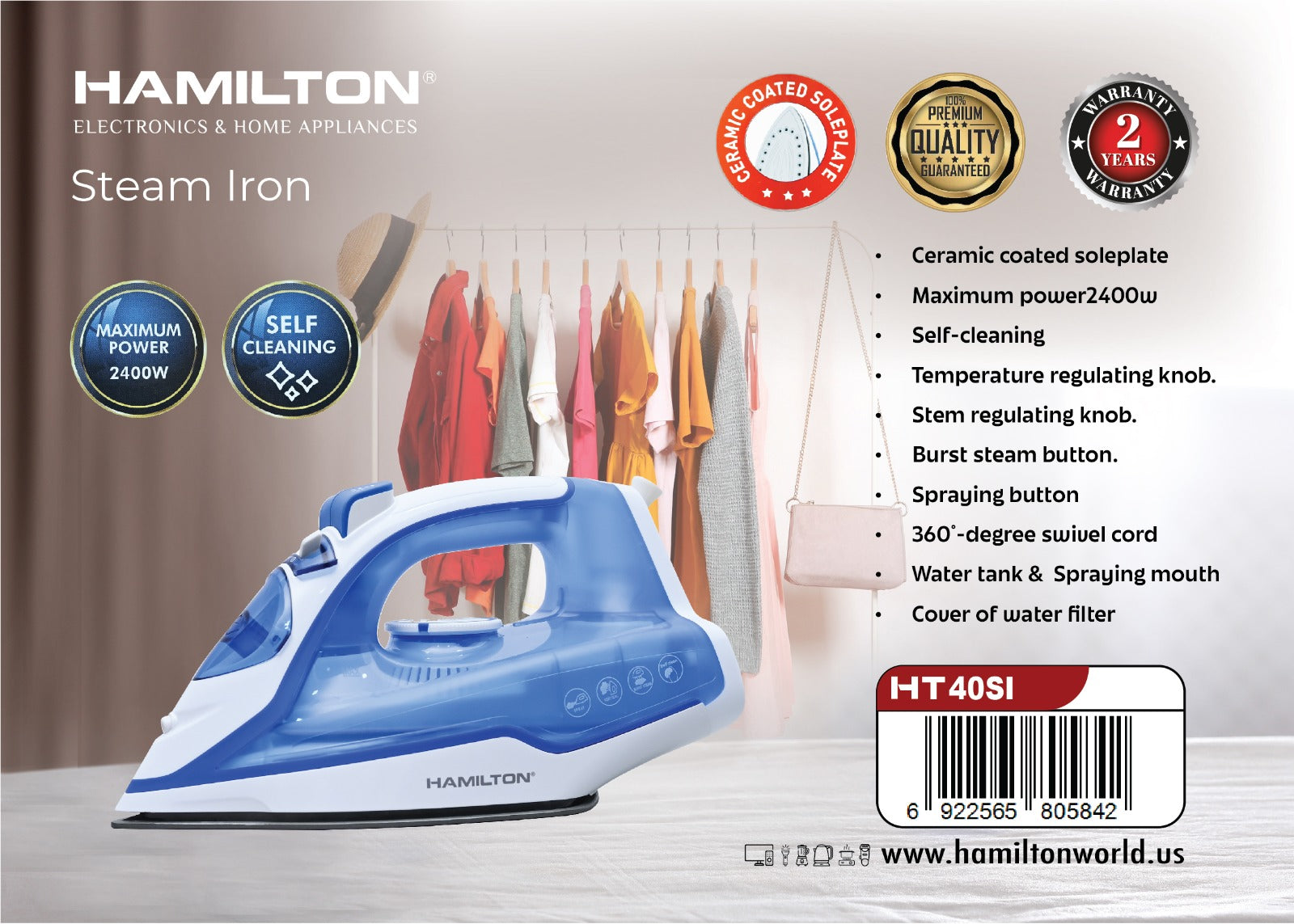 مكواة بخار هاميلتون / سطح تسخين سيراميكي بسعة 2400 واط