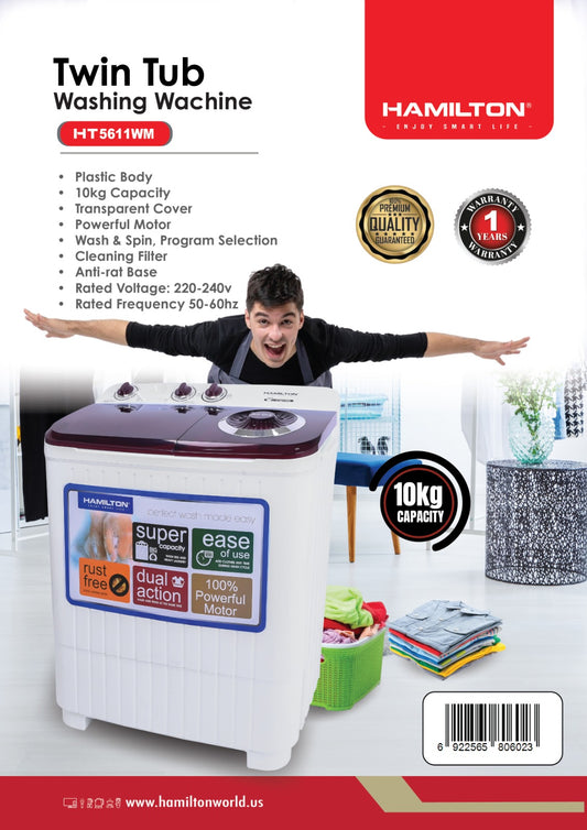 HAMILTON TWIN TUB WASHING MACHINE 10KG